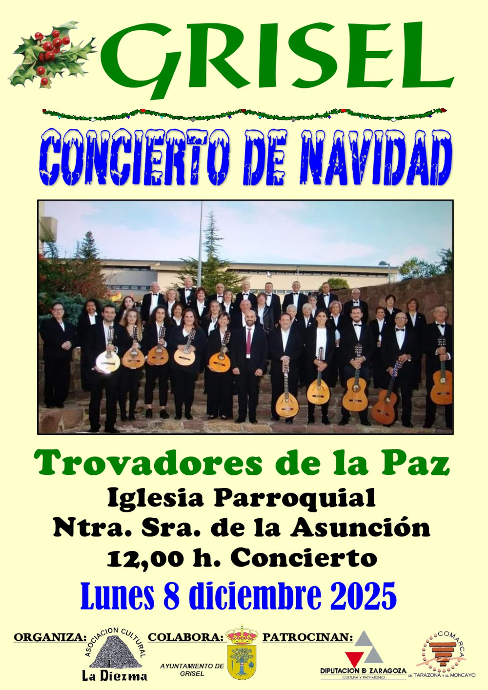 Este lunes, 8 de diciembre, tendrá lugar en Grisel un Concierto Navidad.