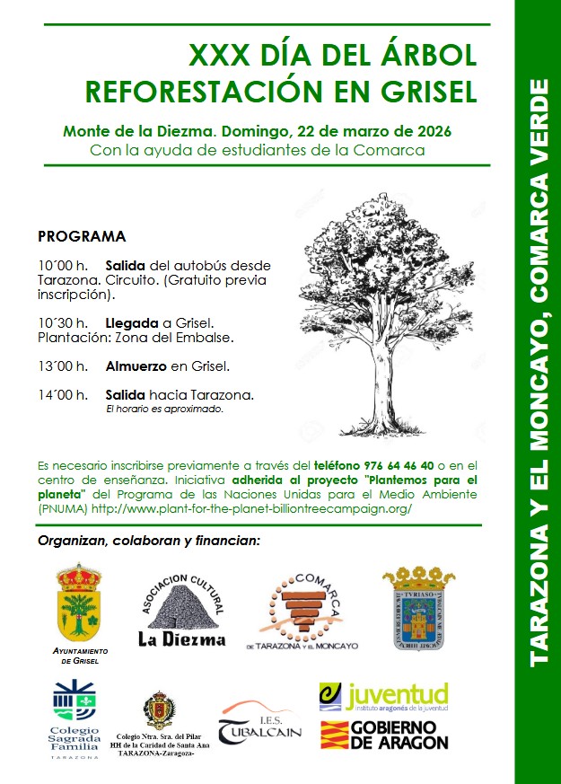 El domingo 22 de marzo de 2026 se celebrará en Grisel el XXX Día del Árbol con el siguiente horario:
